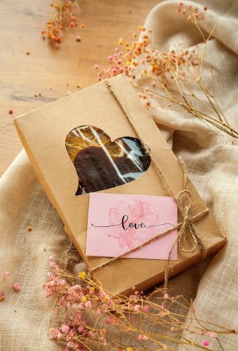 И всё это идёт в комплекте с крафтовым пакетом и крафт открыткой, которую можно подписать.
