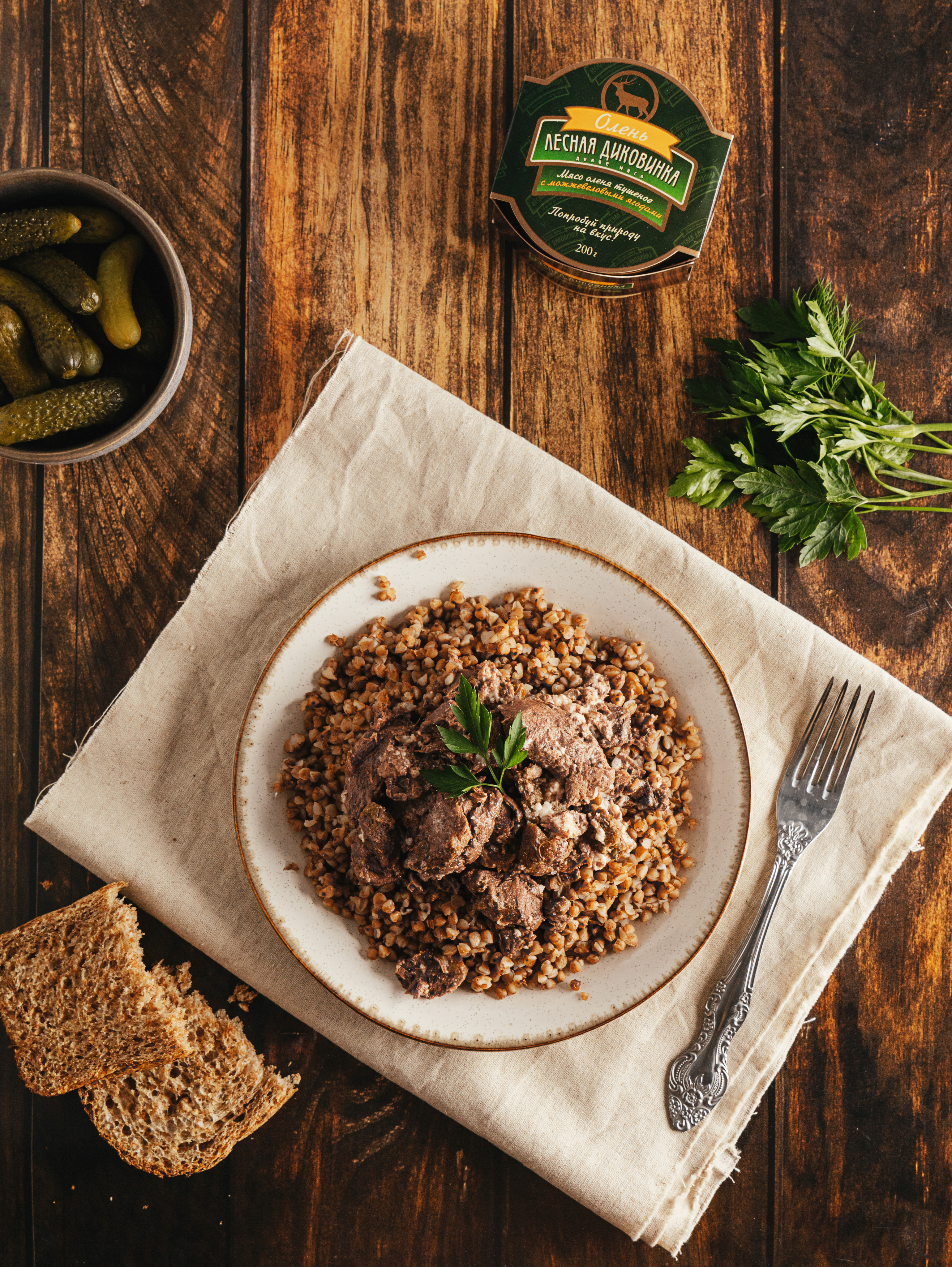 Паштет из мяса оленя приготовлен без добавления консервантов и искусственных красителей.